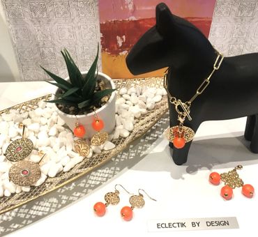 When l design and make the pieces, l try and and source material that is light, but not inferior in quality and the reason l have done this is because l love statement pieces in particular earrings, and l have found what was on offer, was taxing on my ears, l also found heavy bracelets were not great to wear and a distraction, again trying to make them a little lighter in weight.